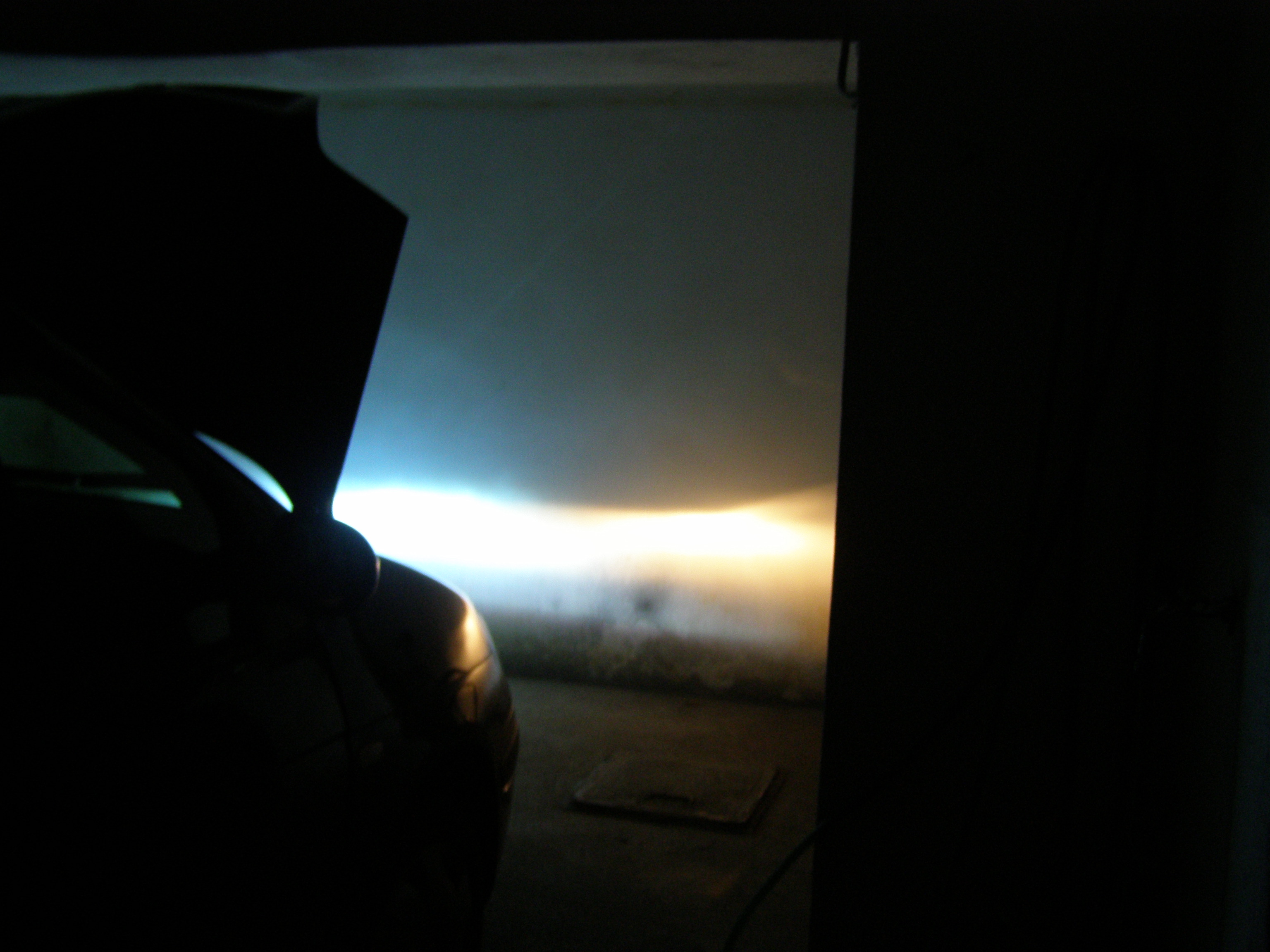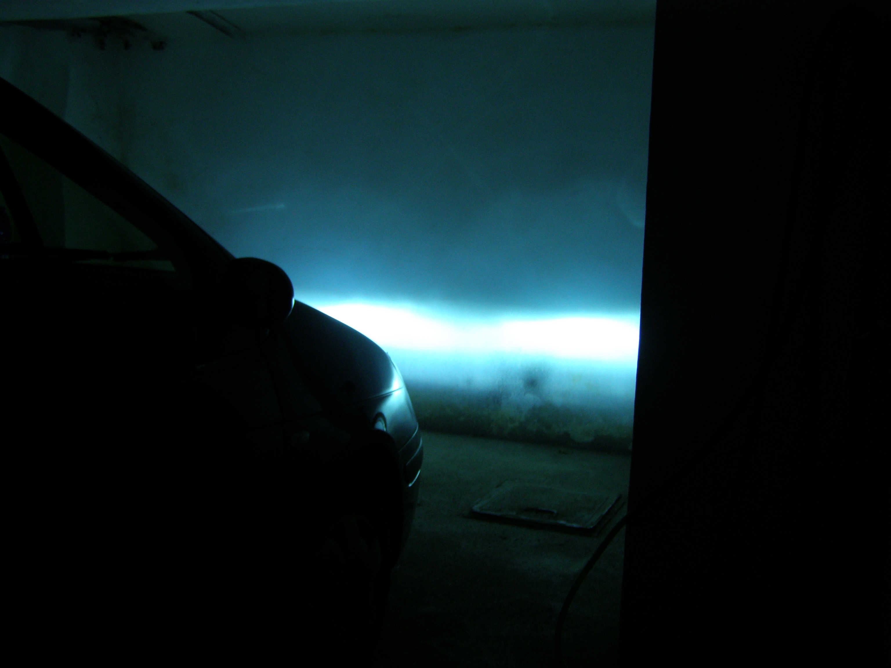 Tak konečně se mi povedlo vyfotit přímé srovnání. Vpravo bixenon 6000K a vlevo je sice už auto asi o metr za mnou, ale výsledek je jasný