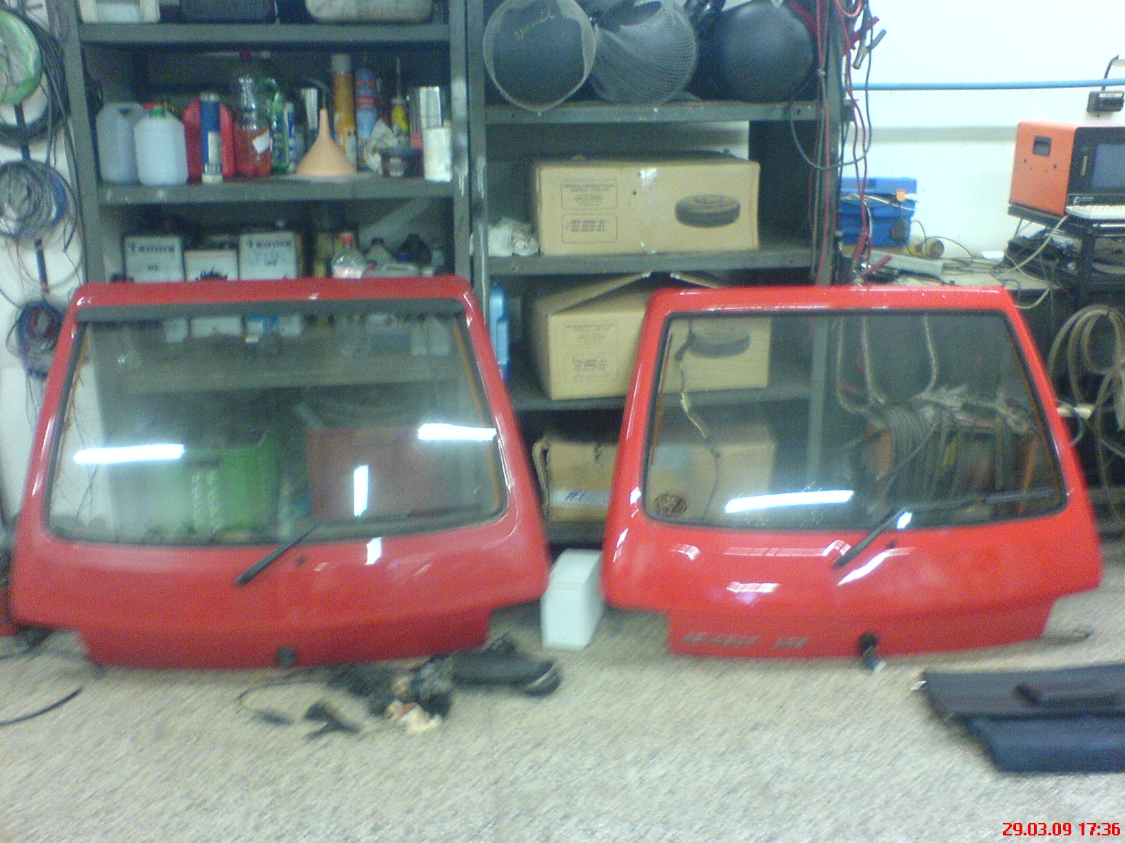 Minulý týden jsem si přivez jedny kanaldekly,zadní nápravu z 309GTi,novou kapotu na 205 pro strýčka příhodu,volant 309 GTi a nějaký drobnosti.