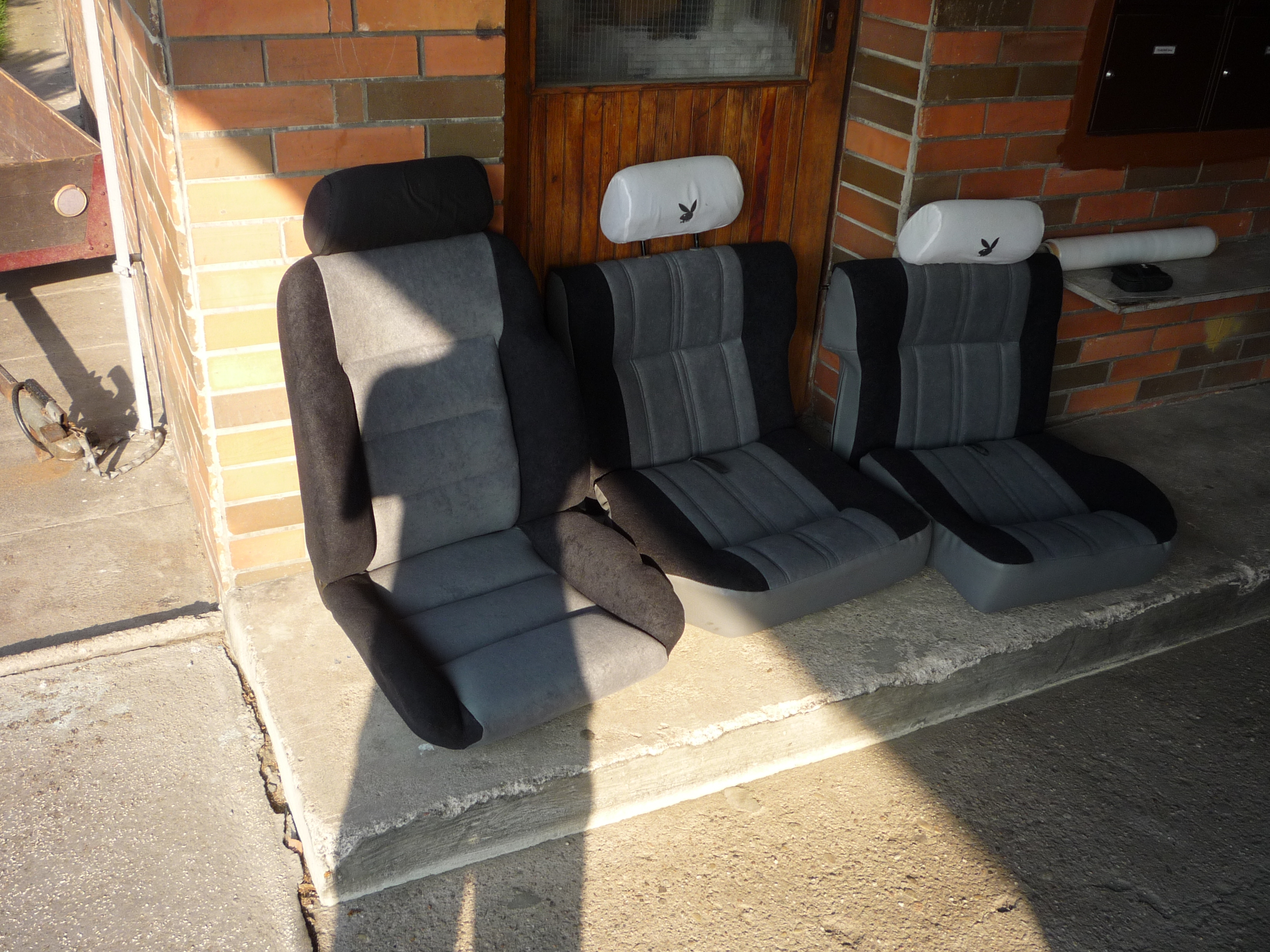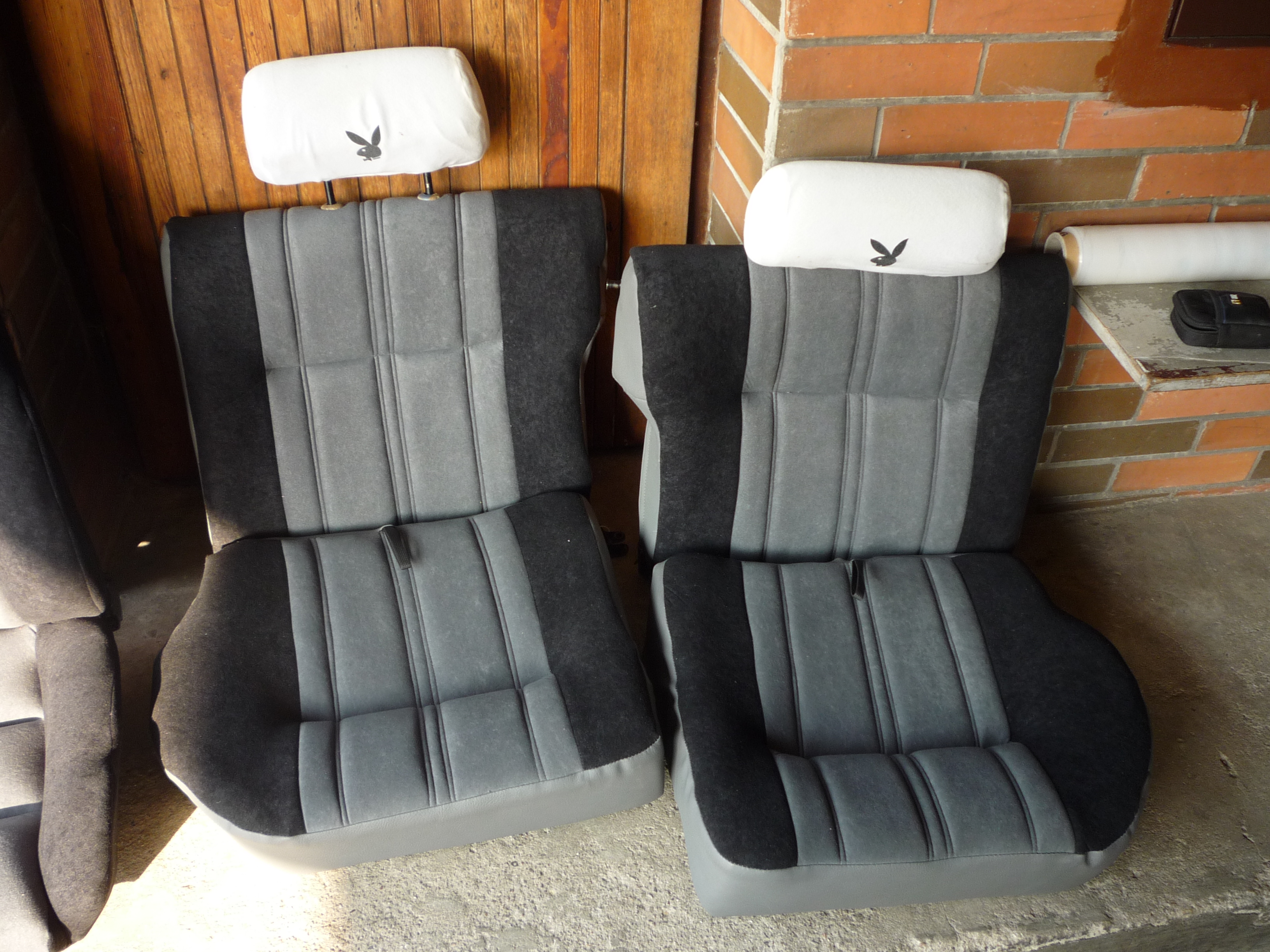 Zatím, co lakýrník zvelebuje zevnější vzhled pugyho, tak čalouník zvelebuje sedačky. Tady zatim malá ukázka, v autě to bude eště lepší. Už se těšim až to bude všechno cajk