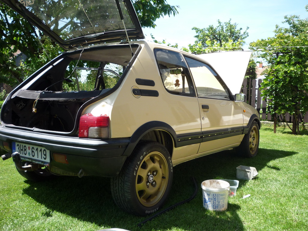 dneska mě začíná svaťák a zároveň de puga k lakýrníkovi. částečně sem odstrojil. Uvidíme, co z něj lakýrník vykouzlí. Stříkat se bude teda jenom vnějšel auta, vnitřek je stejně skoro celej zaplastovanej.
