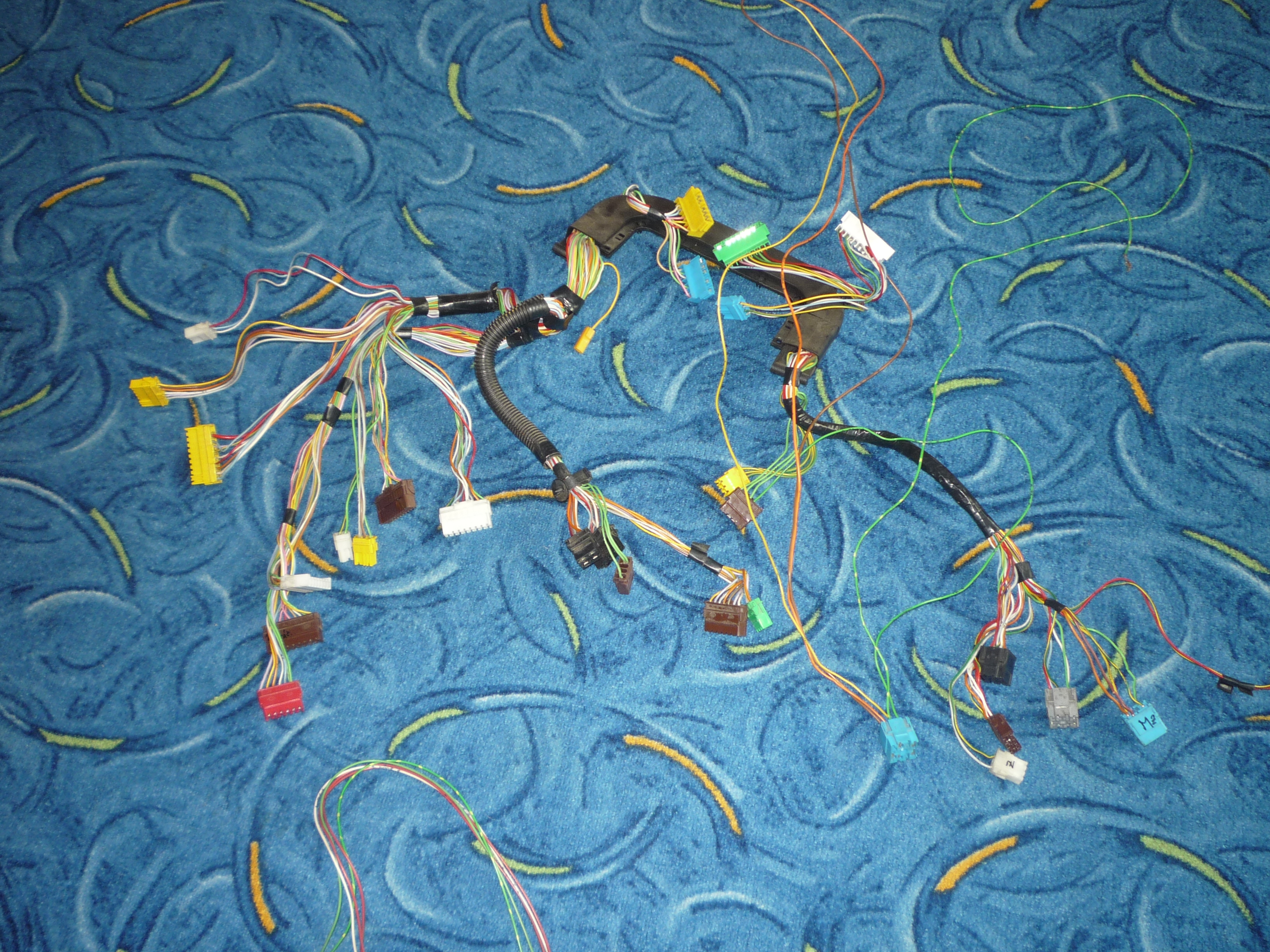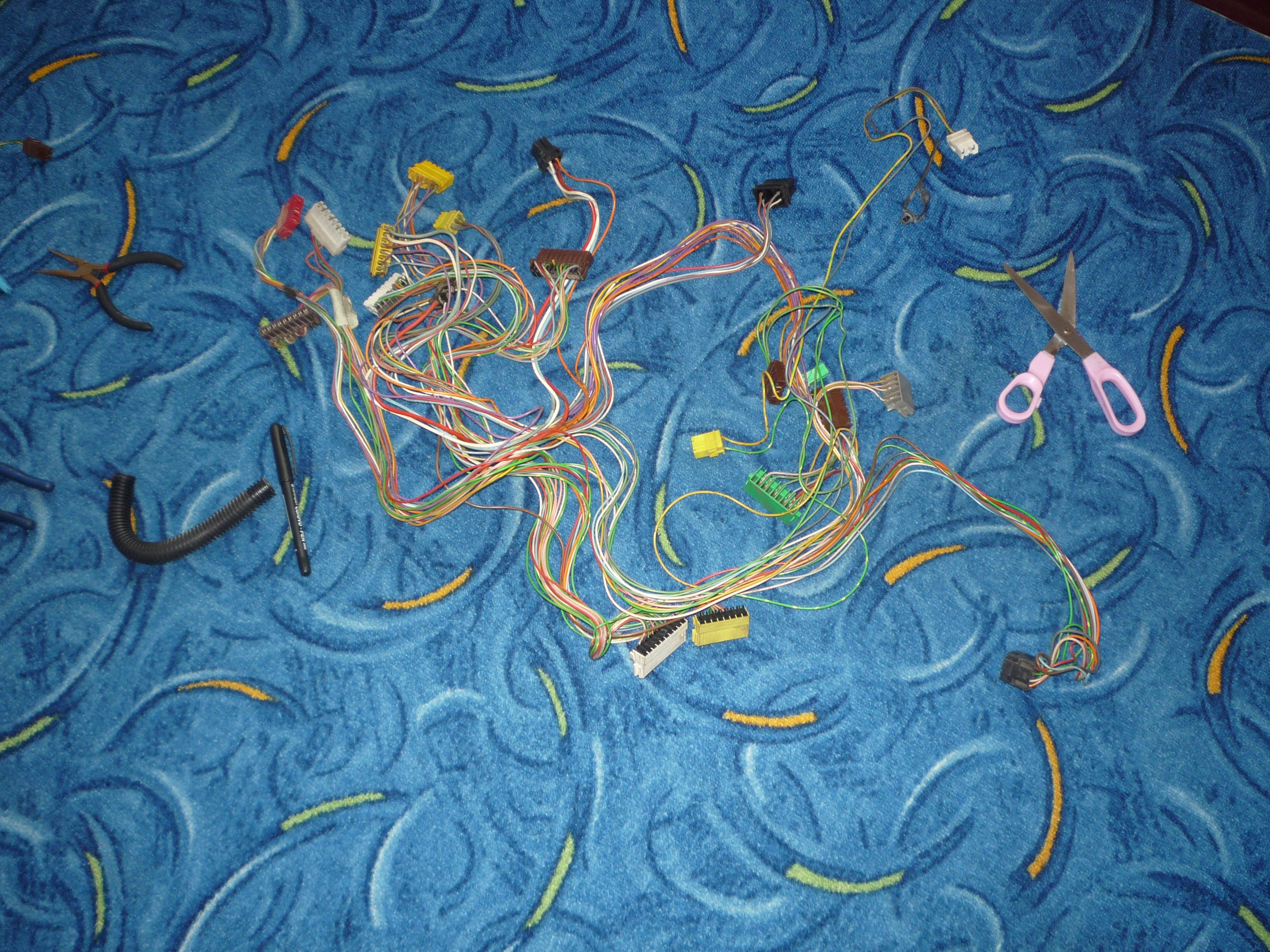 Tak válka s nepřehledností elektriky pokračuje. Na srazu sem si vzal od stenliho kabelovej svazek k budíkům a celej sem ho upravil pro pět tlačítek ve střednim panelu a odstranil jsem kabely, který v něm jsou na nic, jako třeba diagnostika. Vypadá to jako original. Takže až bude čas a chuť, tak pude do auta.