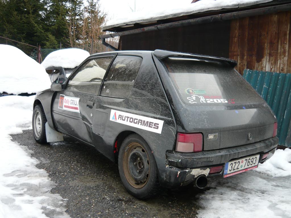 Tohle auto je vlastně teďka seskládáno z několika různých 205tek ze kterých se vzali ty nejlepší díly a vzniklo jedno auto.Samozřejmě ještě není kompletní,tohle je taková první evoluce,kdy bylo třeba všechno rozbýbat a napasovat,některé díly byly použity i z našeho závodního Peugeota 205 Maxi,který byl osvědčený a velice rychlý,teďka si nachvilku odpočine tak doufáme že tahle 205tka bude minimálně stejně rychlá.