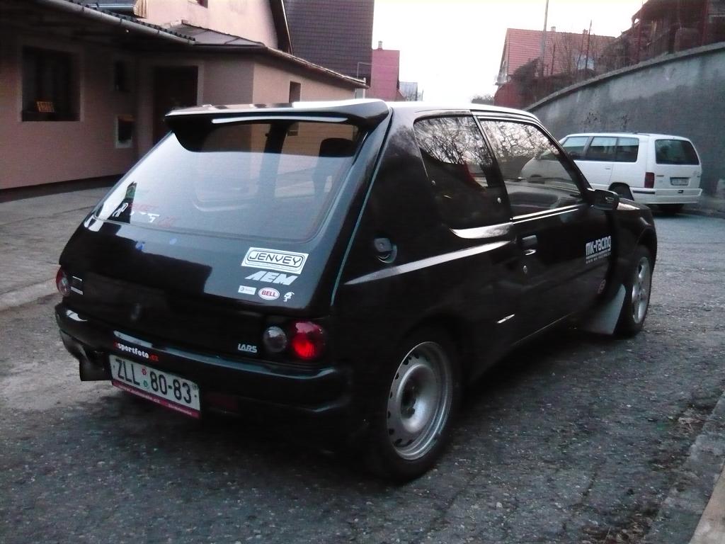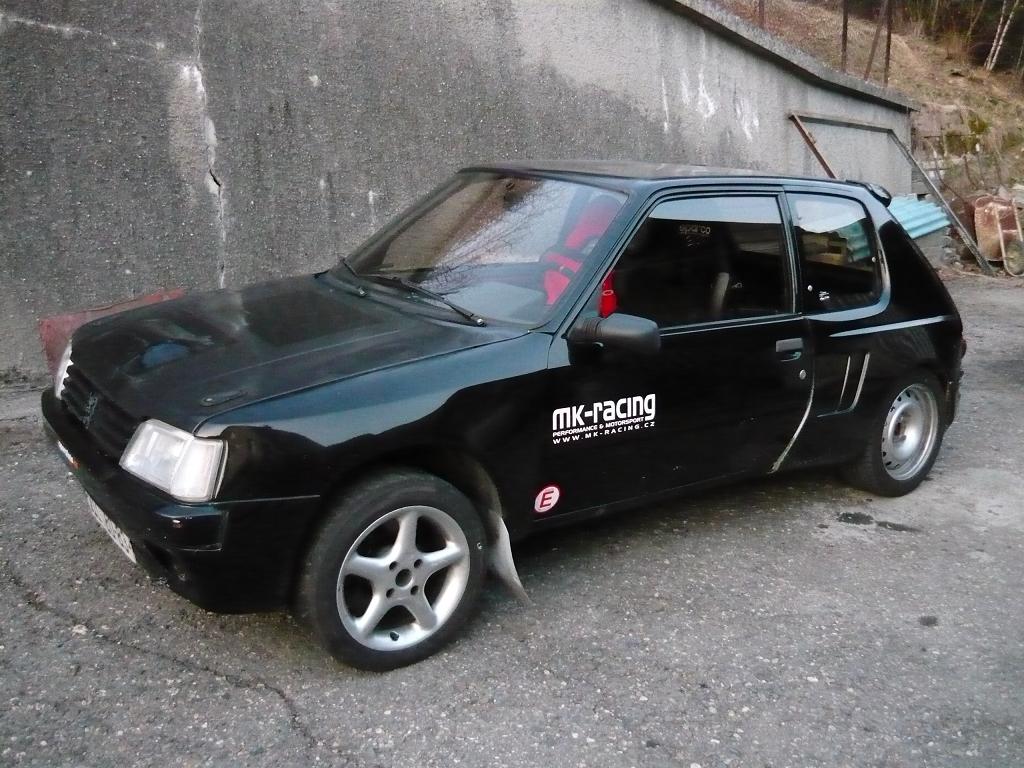 .Škodovky nejezdily špatně,podvozkově taky fungovaly jelikož na obou byl osvědčený komplet od známé české firmy HP sporting ovšem se Saxem srovnávati nelze.Takže jsem opět po nějáké době usedl za volant silnějšího vozu francouské provincie a musím říct že to byl opět pěkný pocit,řídit něco co už jede pěkně svižně i proti kopci.Radost ze Saxa ovšem netrvala příliš dlouho,přišla zima a jeden tupec mě trefil na předek,bylo to na mostku takže už jsem bohužel neměl kde víc uhnout než na svodidla.No abych to zkrátil,plány na opravu byly veliké,nakonec jsem měl štěstí a sehnal celé druhé auto s kupou dílů,takže jsem si mohl nechat moje jako rezervní a "hned jezdit".Plán byl jasný otestovat Saxo i na závodech,pořádně se vyřádit a porovnat ho proti 205 GTi a hlavně to nerozbít.Takže se začlo postupně upravovat ale tak aby se dalo ještě používat jako druhé auto v rodině.Jelikož se nám ale tento rok odporoučel motor v závodním GTičku,tak Citrón prošel ještě dalšíma většíma úpravama,když už byla volná progr. jednotka z Puga tak ať to stojí za to a sezónu závodů jsme dojezdily Saxem.A teď abych se už dostal k tomuto konkrétnímu autu.V hlavě byly samozřejmě další nápady jak a co předělat na přístí rok na Citroenu,taky bylo super že je to poměrně novější auto,na které se dá sehnat bezproblémů dost těch "správných věcí" na závody a je hodně rozšířené v jákémkoliv odvětví motorsportu.Říkal jsem si že 205ku si už žádnou nepořídím,Saxo mě uspokojovalo dostatečně,jak podvozkem tak motorem,navíc motorů a hlavně dílů na postavení nějákého slušného XU5J(P)4 je rozhodně více než XU9 ať už 8V či 16V a vlastně všeho takového spotřebního zboží.Ale stalo se něco s čím jsem nepočítal.Jednoho dne mě zavolal kamarád že by se chtěl zajet podívat na nějákou 205 GTi.Podařilo se a koupil jedno moc pěkné GTičko v původním stavu no a já jsem s tím měl jet zpáteční cestu domů.Byl jsem neuvěřitelně nadšený s toho auta jelikož jsem už zapoměl jak se v té 205tce krásně jezdí,naprosto mě to dostalo a když potom přišla možnost mít tuhle 205 Gutmann dlouho jsem neváhal.Tak jsem se něják rozepsal,moje první auto byla 205 GTi takže asi "Peugeot 205 GTI" FOREVER