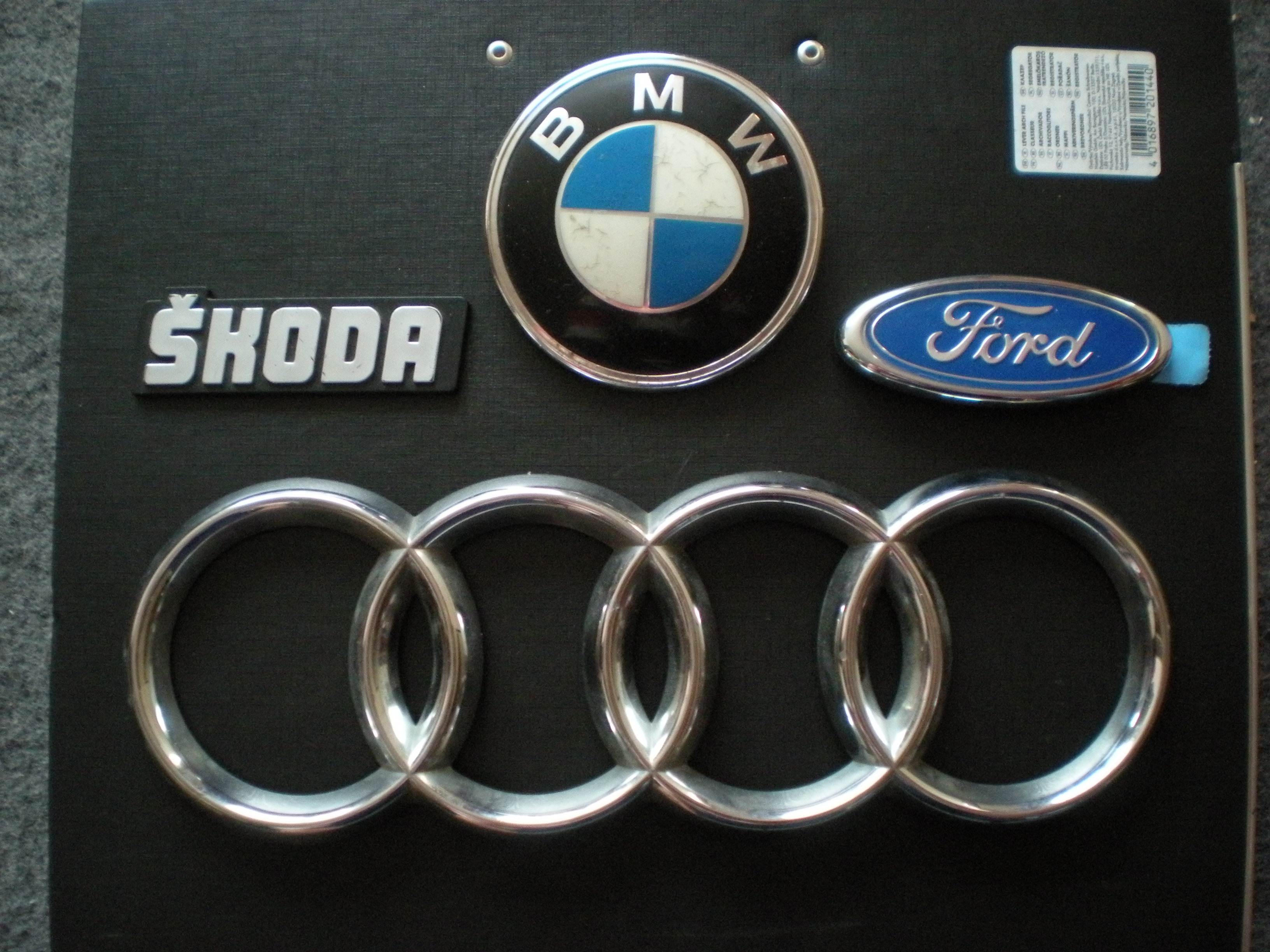 Prodám tyto znaky: Audi-99kč BMW-50kč Ford (úplně nový)-150kč Škoda-50kč Peugeot znak-50kč Peugeot nápis-30kč 205-50kč 405-50kč 605-50kč injection-50kč