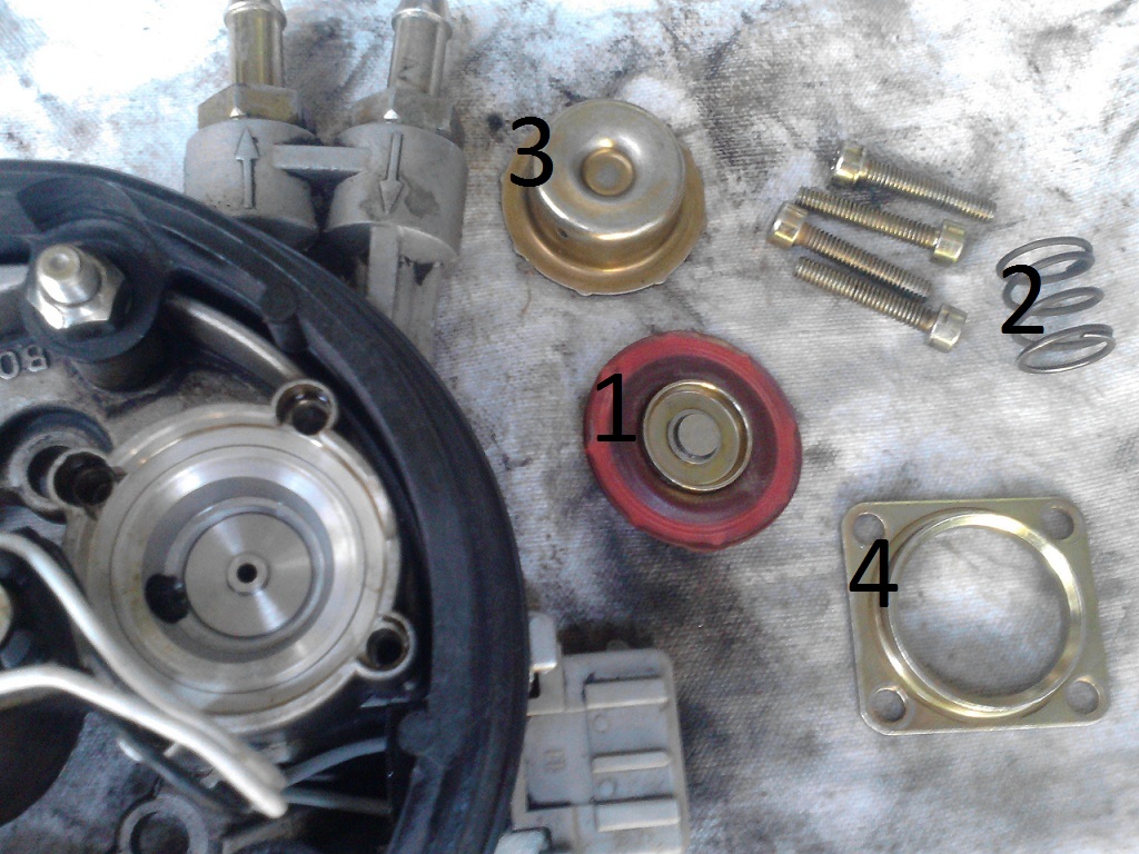rozebral jsi regulátor tlaku paliva a asi to úplně dobře netěsní, když ti z toho de benzín :fran: ten vývod je jenom k odvětrání komory potenciometru, taky jsem to měl na jednom autě zaslepený a na druhym volný....