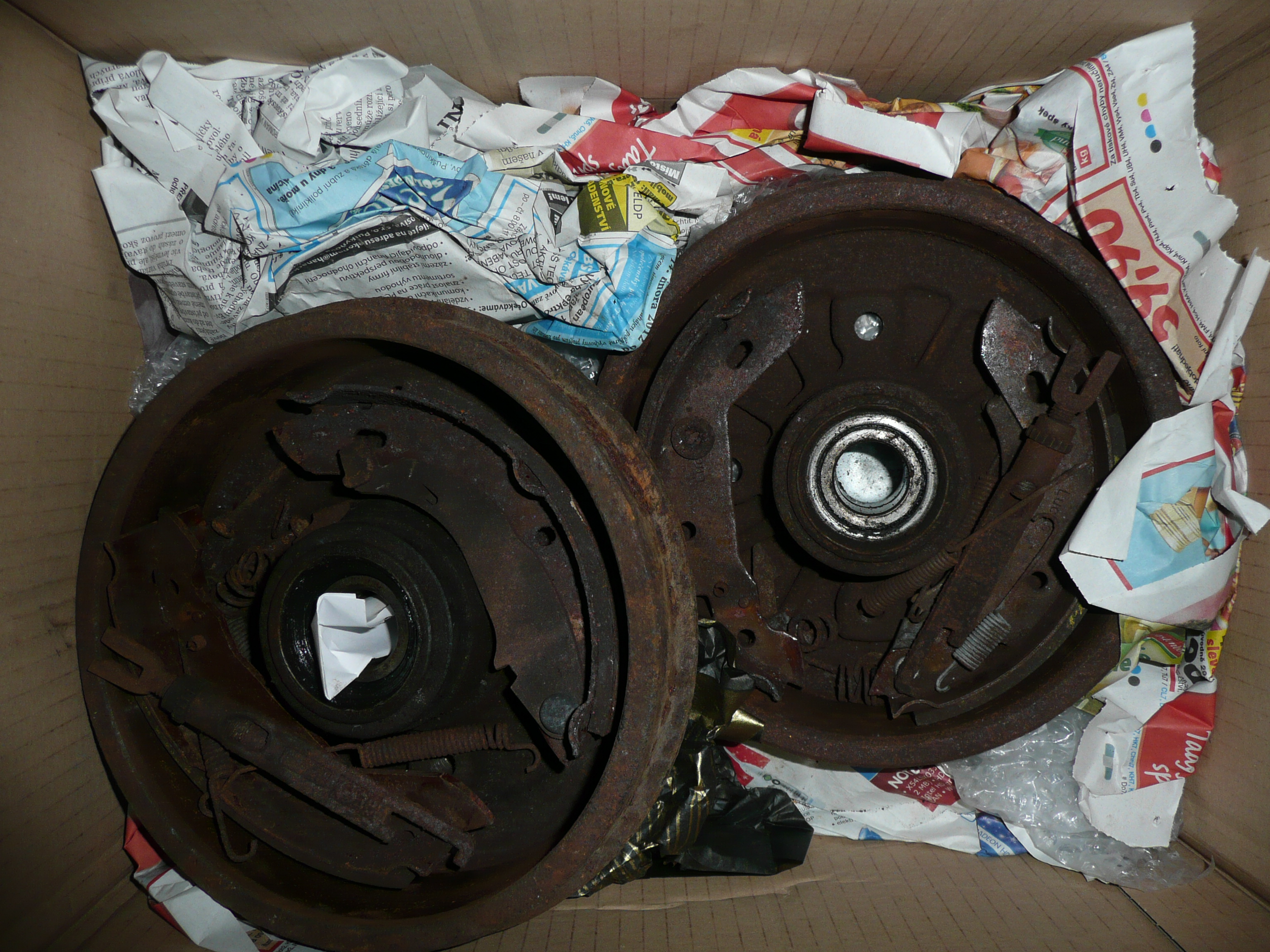 Prodám oba brzdové bubny s ložisky + obložení + upevňovací díly obložení (prostě vše kromě prasátek). Brzdový systém je Lucas (měl by to být Lucas, na čelistech je napsáno Lucas, ale raději ještě zkuste posoudit sami podle fotek).