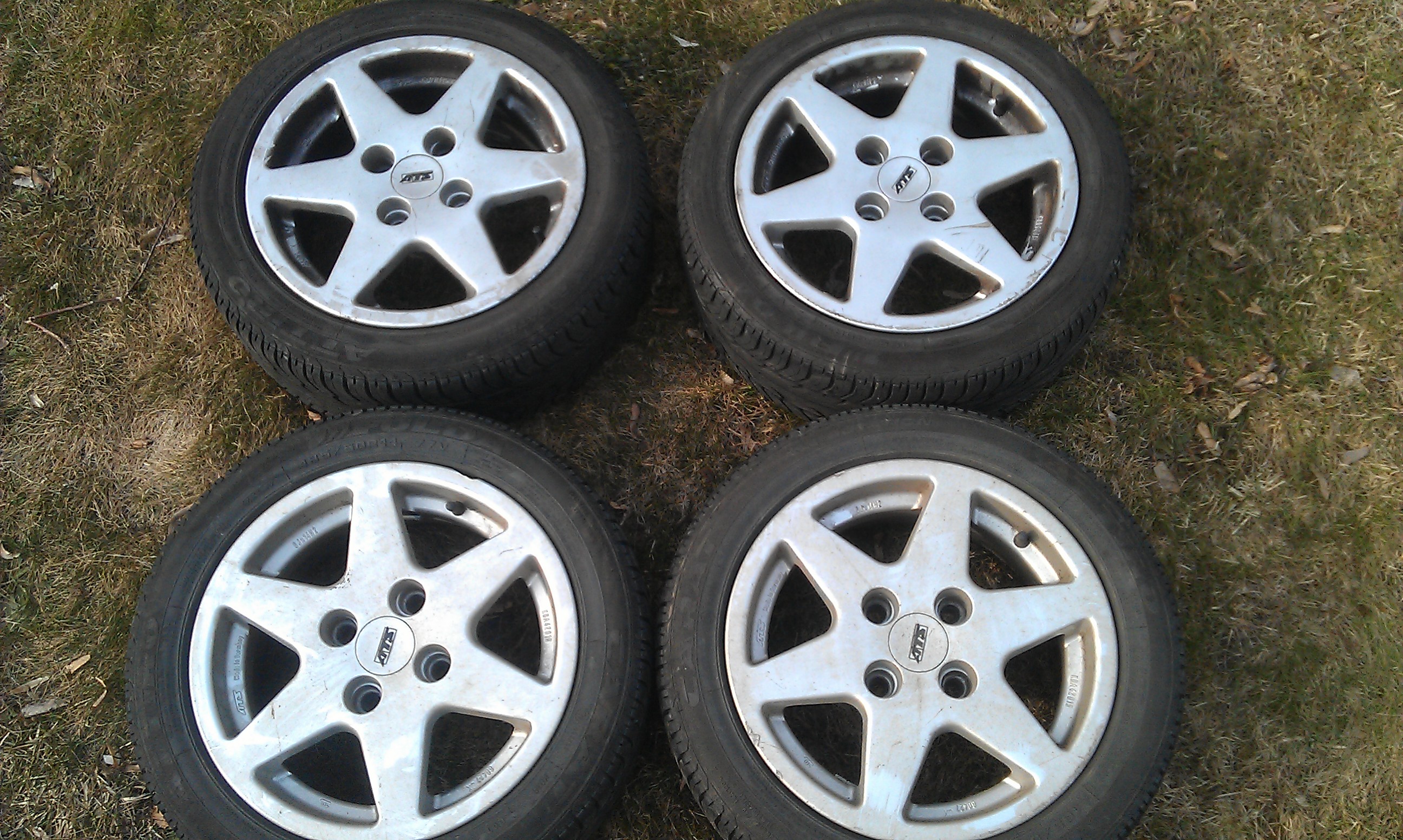 Prodávám alu kola ATS (made in germany) 14" s roztečí děr 4x108 a pneu FULDA carat 185/50, pneu vzorek cca 6mm. (nevim proč ale na jednom kole je nasazena pneumatika FULDA carat 195/45. Ale jezdil sem s tím a na pohodu) CENA: 3000,-Kč