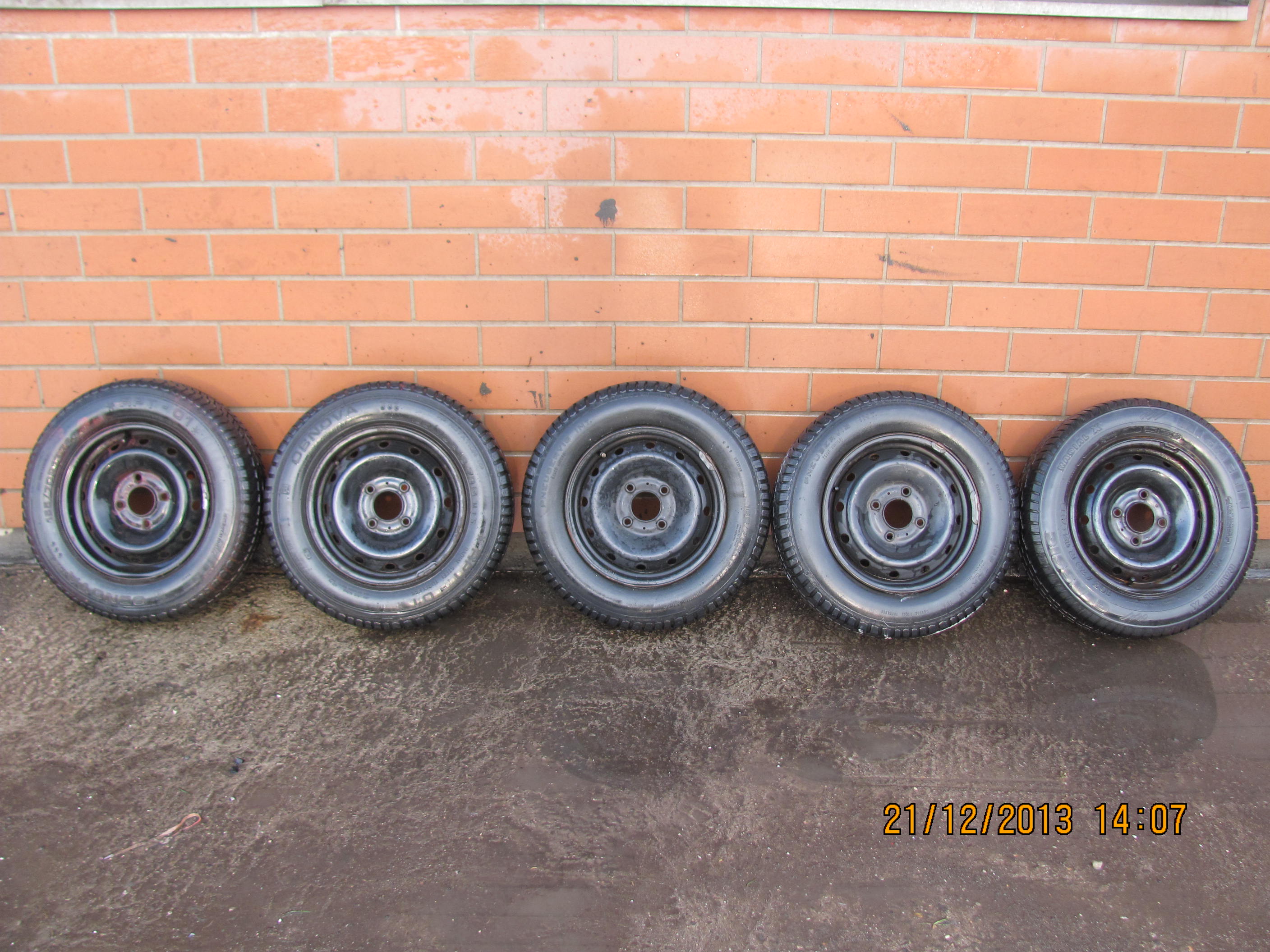 prodam 5 ks kol z peugot 205 s pneu 165 75 r13 pneu zimni okolo 5mm.cena 1000kc