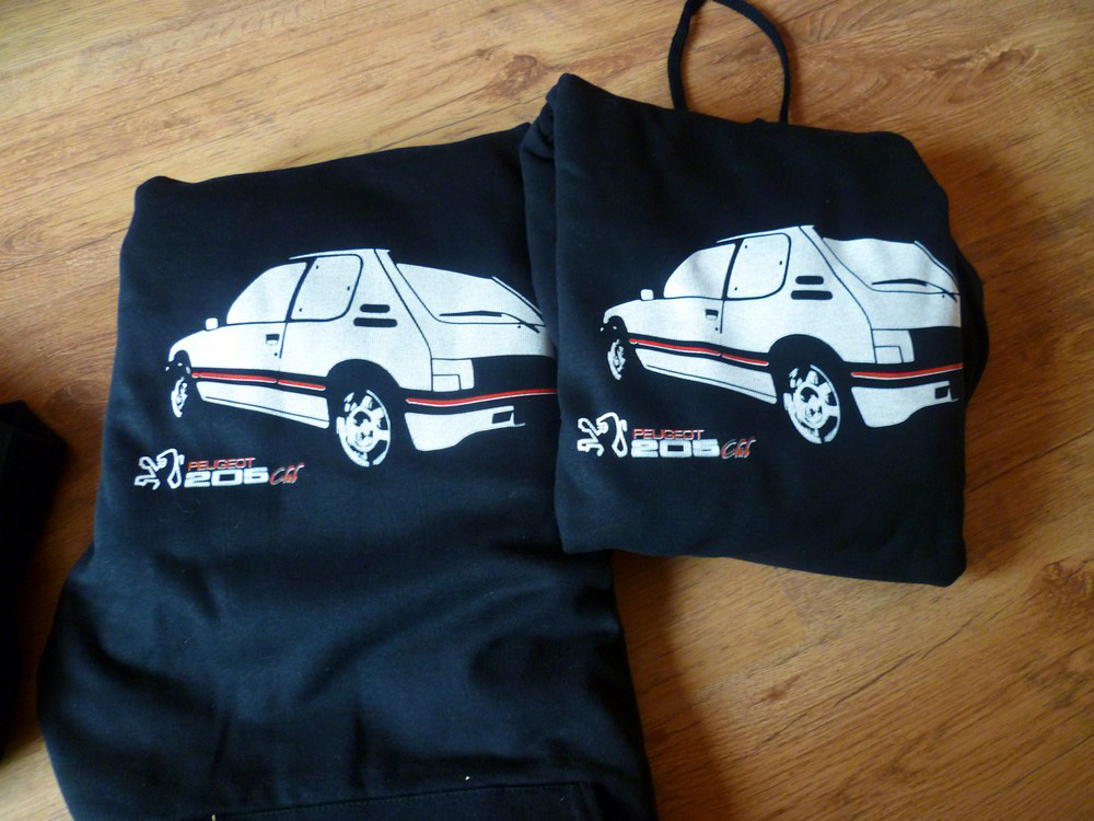 XL - bílé triko cabrio - 100,- XL černé triko s nápisem - 2ks - 100,- L šedý melír s červeným GTI -100,- L černé s autem a logem - 100,- L černá mikina -1ks - 300,-