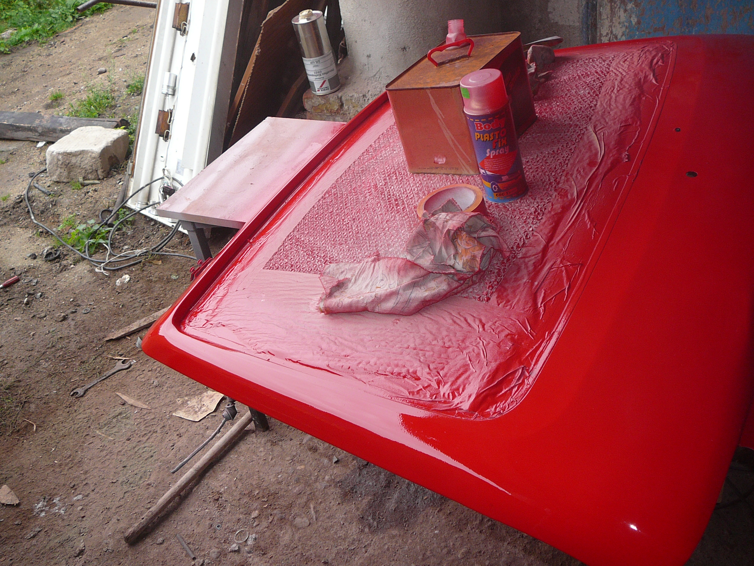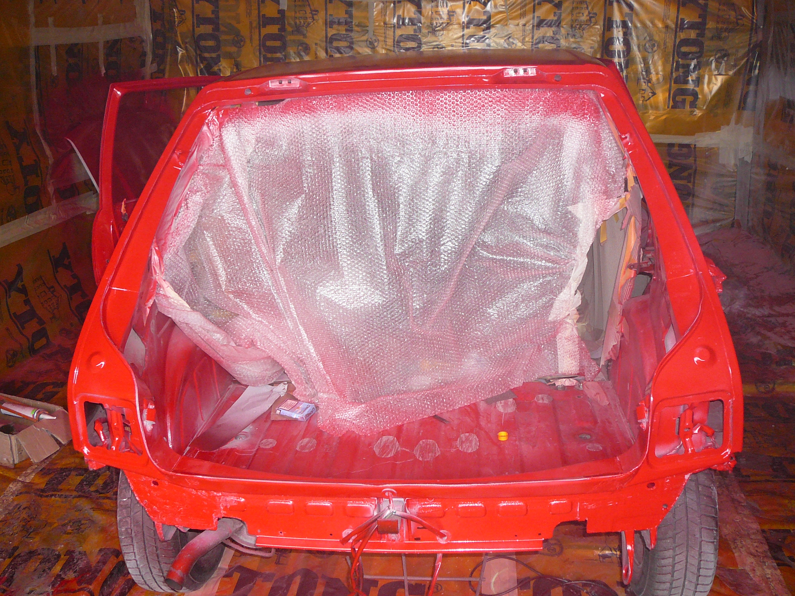 takže začlo shánění papírů,sehnal jsem dokonce i na TD ze slovenska ale paní chtěla za papíry 10 000sk což mě docela zaskočilo,tak sem to zavrhl a sháněj jsem papíry na D,nakonec po domluvě s jedním členem na (Django) sem od něj koupil papíry,tím začalo již před tím kuchání auta a příprava na celolak,takže všechno ven....