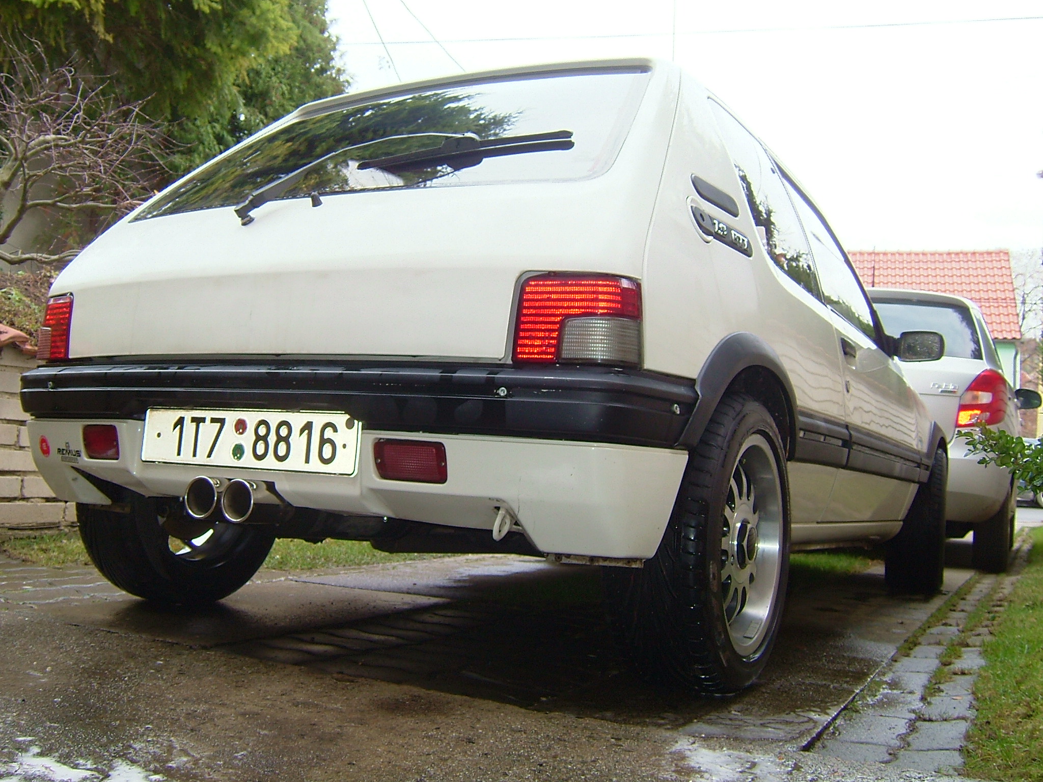 Prvni fotky sem radši ani nedělal, odhodlal sem sa až po takovém menším popravení... Rozbity predni spoiler, auto obute na slikoch, jezdene na rally-slalomu, kupodivu podvozek bez vuli, zadni naprava dobra, pruzi a do "A" nestoji... Minimum koroze, jen levy predni blatnik to odnesl, rekl bych blatnik nekde prohnul, opryskal a pak uz chytnul neduh zvany rez... Takze vymena... Vymeneny taktez budiky za GTIckove, puvodni XS/Rally stale mam, taky pujdu do bazaru... Podelal sem zatim ty zakladni veci, brzdy, kapaliny, ted pomalu skladam druhy motor, portoze na tom co je ted este v aute sa podepsala ruka neodborneho ladice natolik, ze sa uz nehodi s nim neco delat...