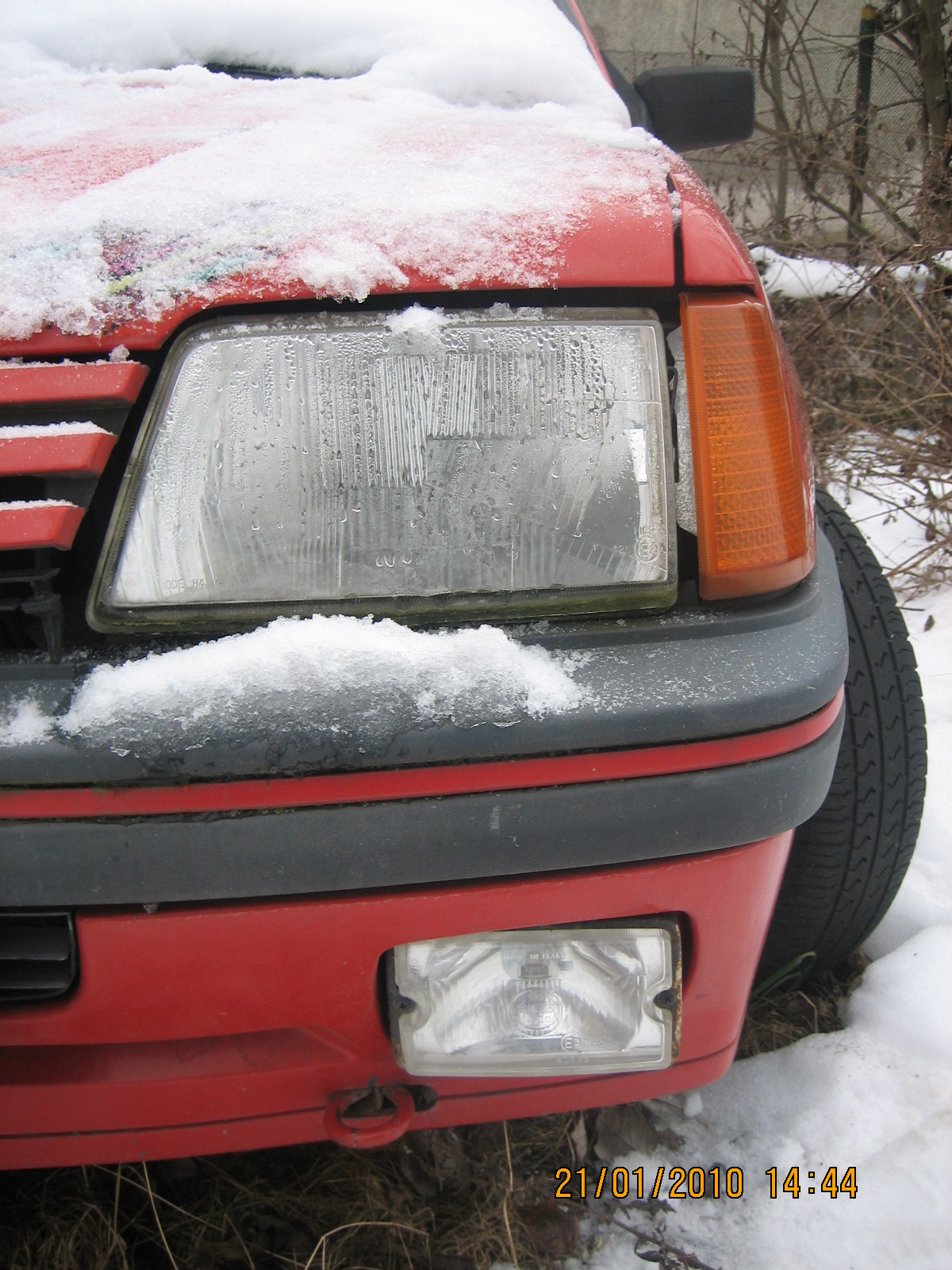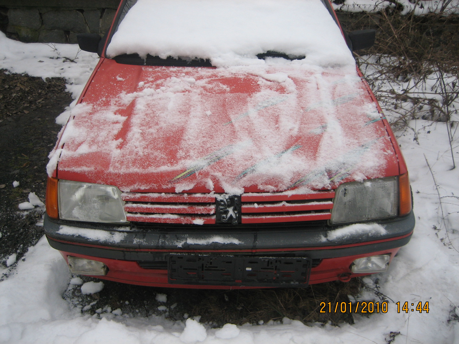 Teď se podržte,po odhrabání sněhu jsem zjistil že má kapotu vypouklou,kterou pořád někdo schání :m: Jinak mlhovky jsou celkem fajn,tak i nárazník.Světla jsou nějaké,mě cizí značky Marshal,což je všechno samo vidět.