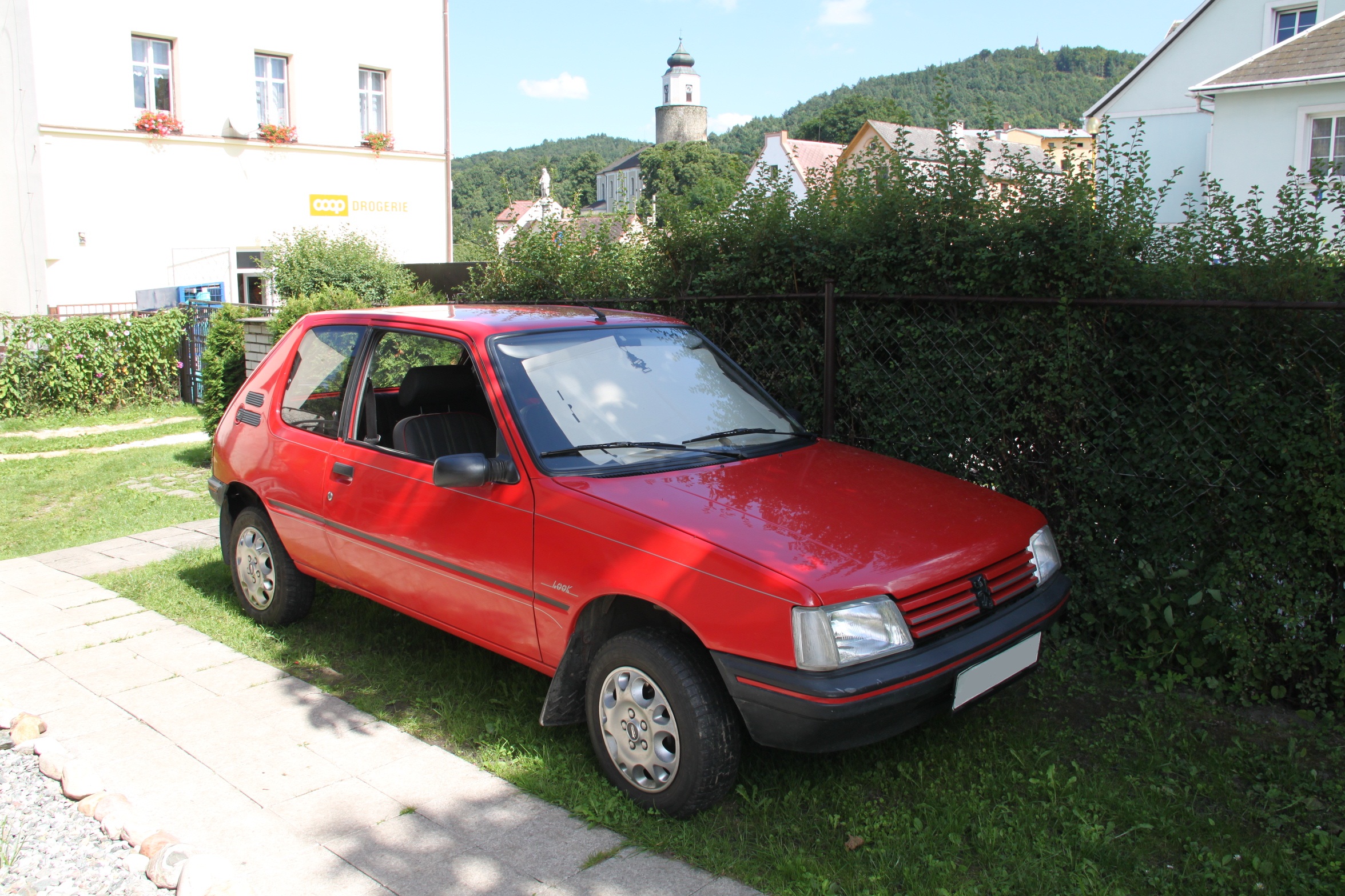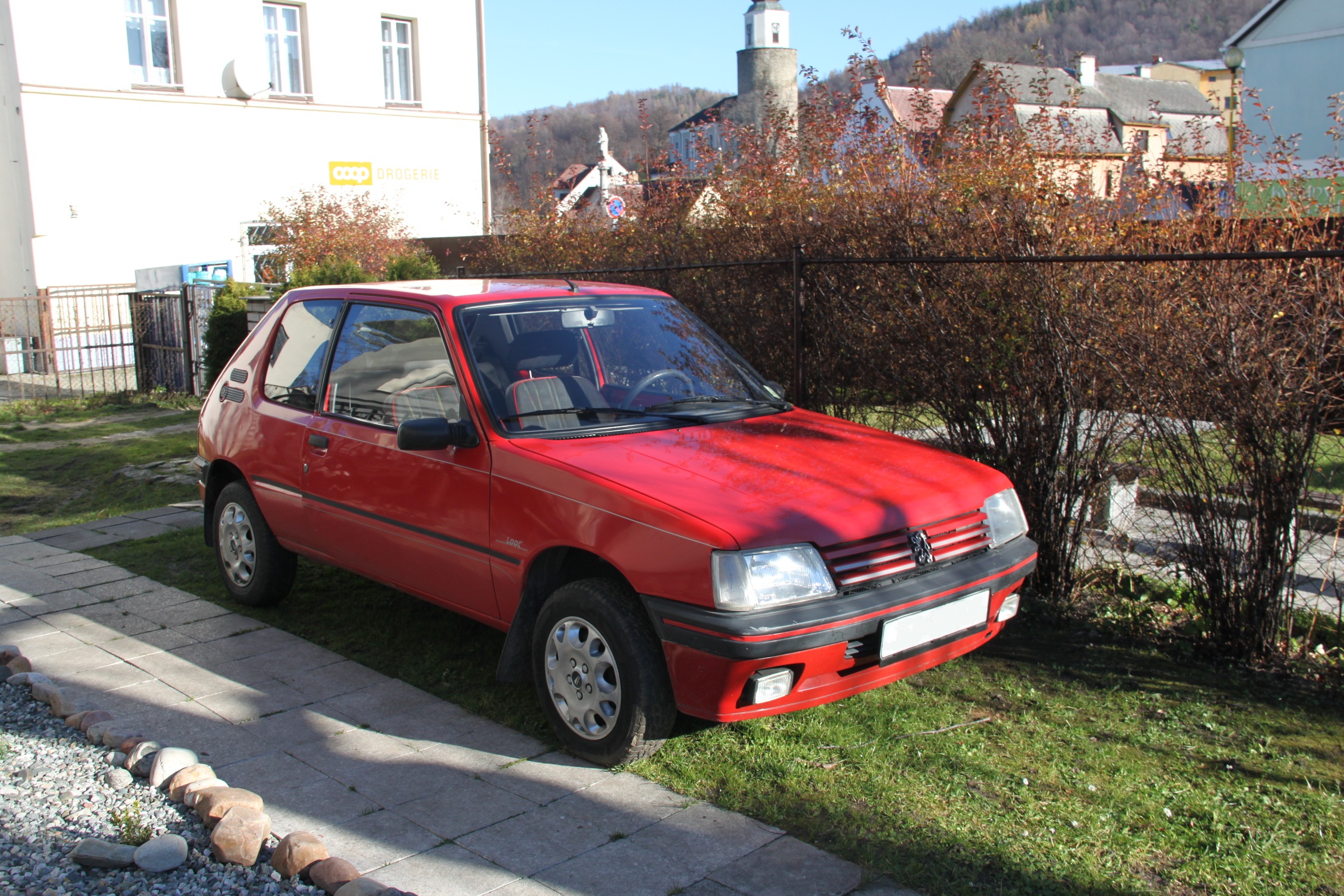 Takže konečně jsem se rozhoupal k sepsání příběhu mojeho vozítka s hrdým lvíčetem na masce. Psal se rok 2000 a babča s dědou hledali náhradu za dosloužilého žigulíka. Vydali jsme se tenkrát naší ještě poměrně novotou vonící feldou na obhlídku autobazarů ve východních čechách. A právě v jednom nejmenovaném autobazaru v Rychnově nad Kněžnou učarovaly dědovi tvary, naftový motor, 3dveřové provedení a bezpochyby také červená barva 205tkového sirotka s dnes závratnou cenovkou 120 tis.Kč.
