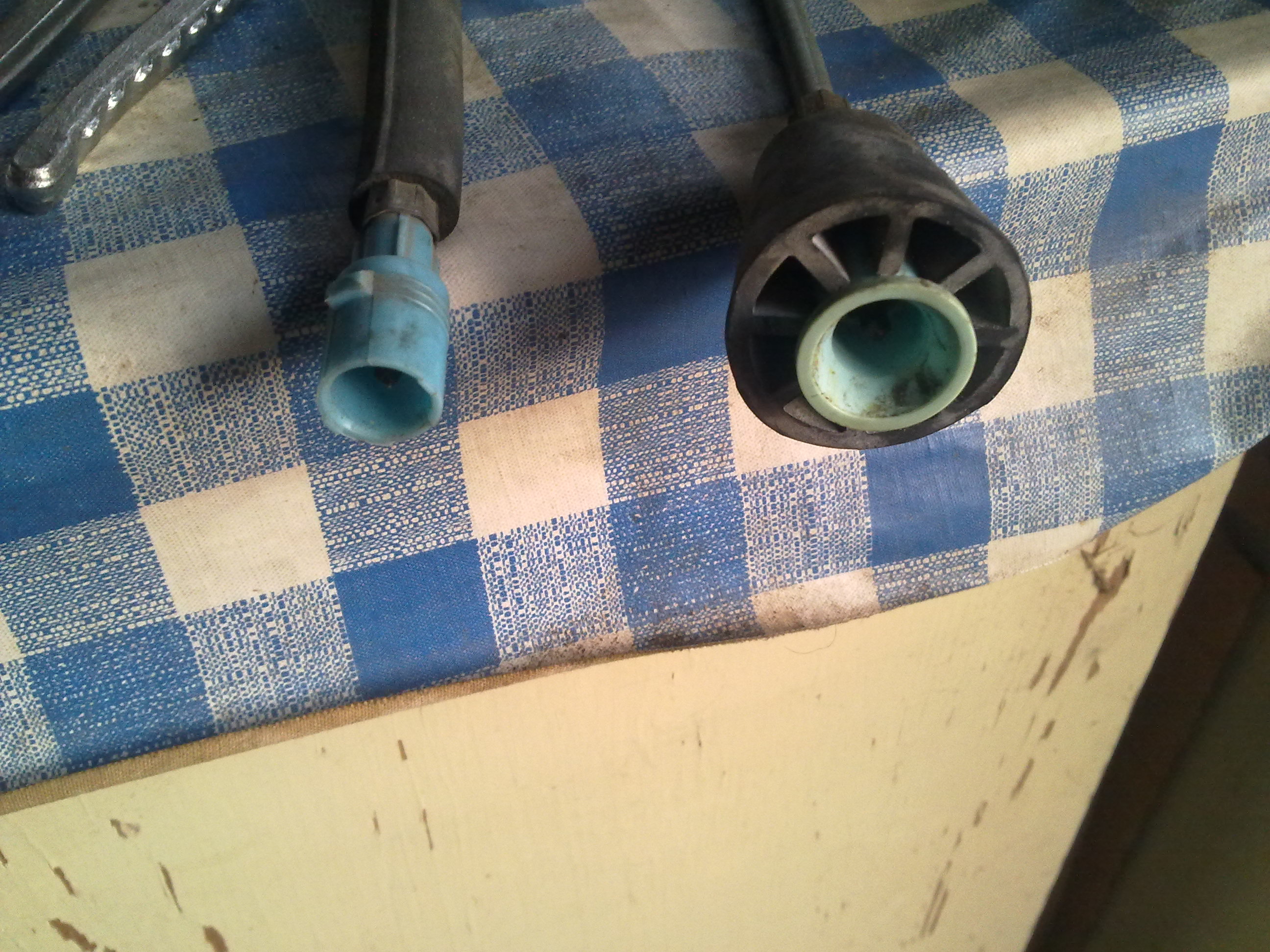 tak sem pokoukal po půdě a našel sem dva, oba z ropy. Ten s tim modrym koncem je rok 92 a s gumovym koncem je rok 85. oba jsou funkční, bez viditelnejch vad. Konce u převodovky a délka sou stejný.